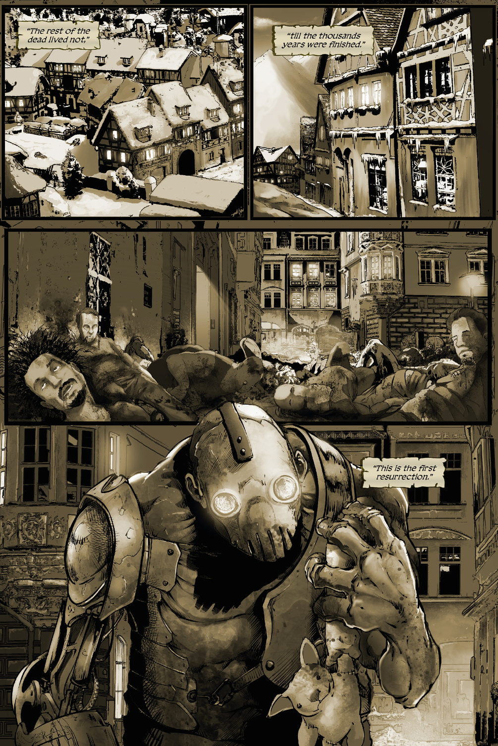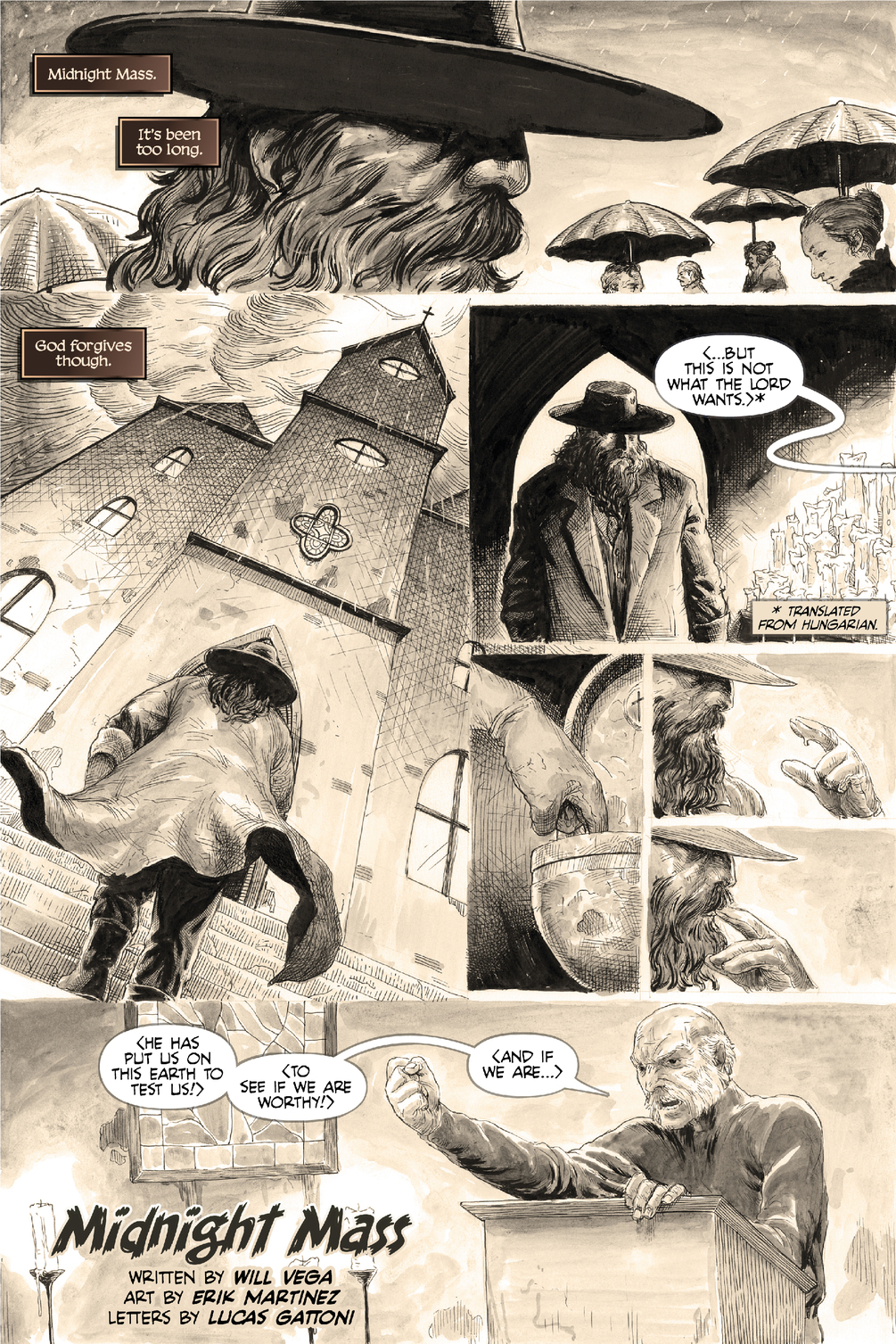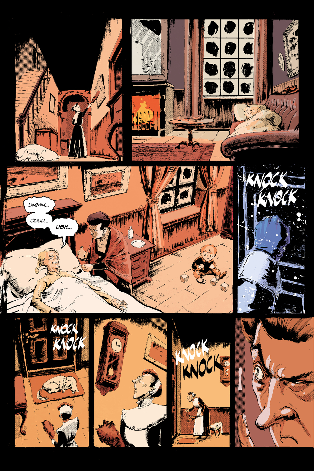 In this issue, wanted fugitive Frankenstein invades a grizzly murder scene in a local German village and is later visited by a mysterious stranger in his secret lab; Abraham van Helsing goes to midnight mass but discovers something more when he heads inside the cathedral; Dr. Herbert Ward Griffin, dressed in gauze, visits an aristocratic family in the dead winter London night to sell them something they can't refuse.